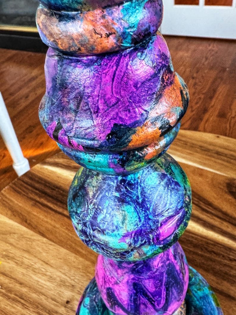 Colorful Candle Holder | Funky Pillar Candle Stick | Large Boho Eclectic Candlestick 15”