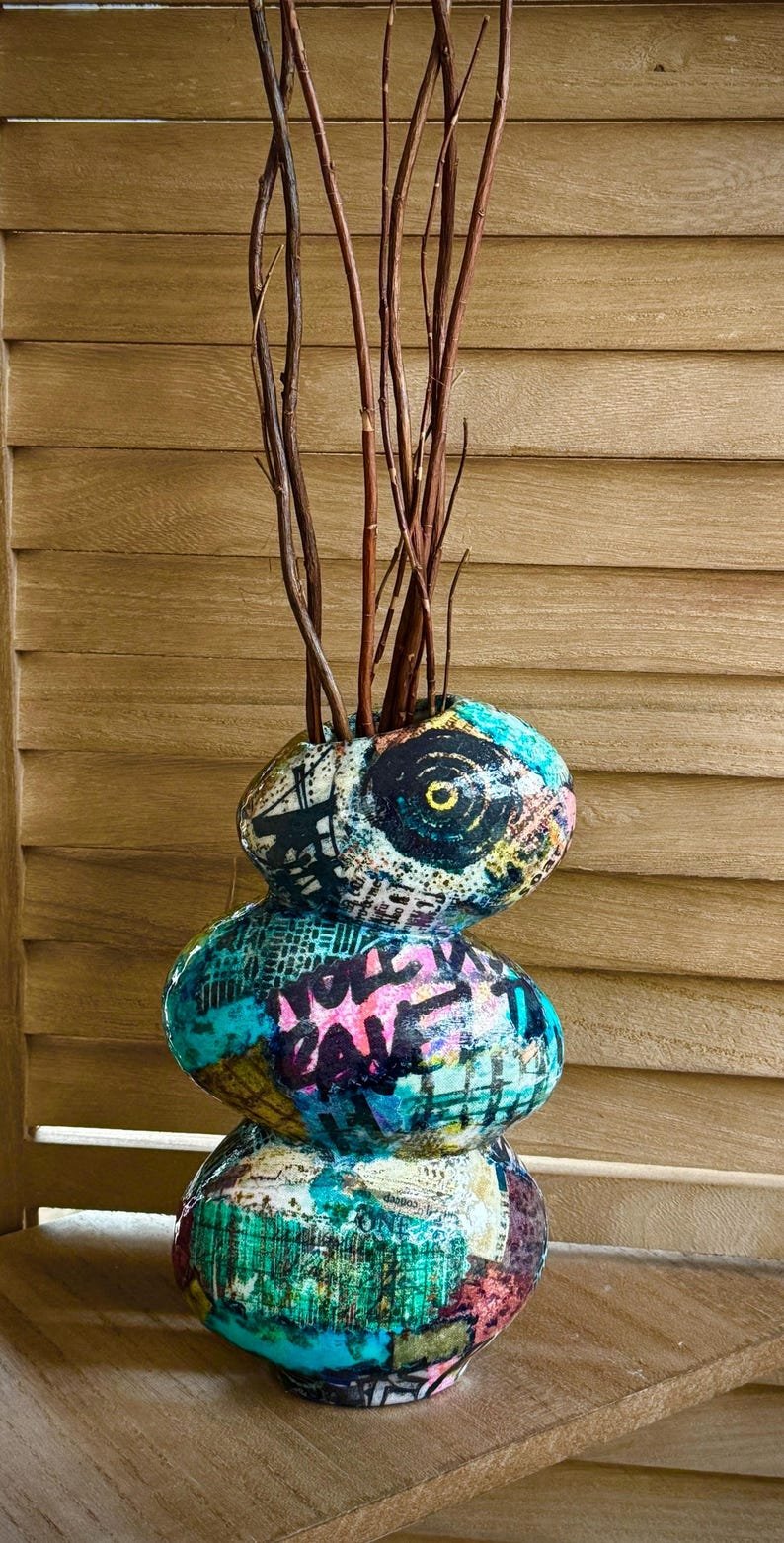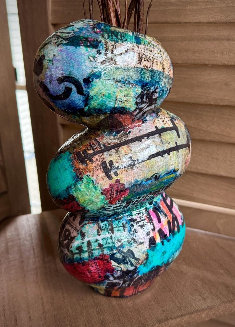 Funky Colorful Boho Vase | Eclectic Vase for Home or Office 8”